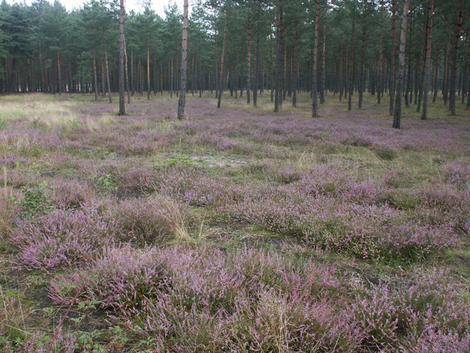 Bei den Maßnahmeflächen handelt es sich um zwei Teilflächen, die in unterschiedlichen Bereichen liegen: Die erste Teilfläche befindet sich in einem Kiefernforst, der einem Waldbrand von 1975 zum Opfer fiel. Nachfolgend hat sich auf ca. 11 ha Fläche eine Sandheide mit einzelnen Sandmagerrasenflächen angesiedelt. Eine planmäßige Aufforstung fand nicht statt. Die Heidevegetation ist inzwischen durch mangelnde Pflege stark vergreist und durch den Heidekäfer befallen. Auch durch Kiefernaufwuchs wird die Fläche stark bedrängt.